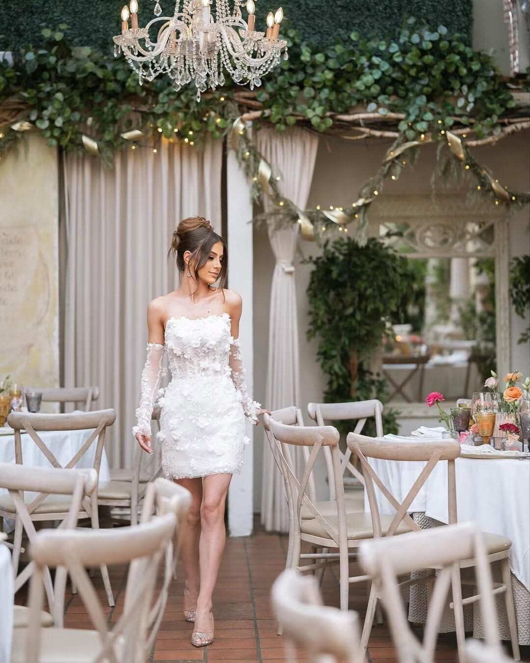 • White 3D Flower Tulle Sleeve Mini Dress