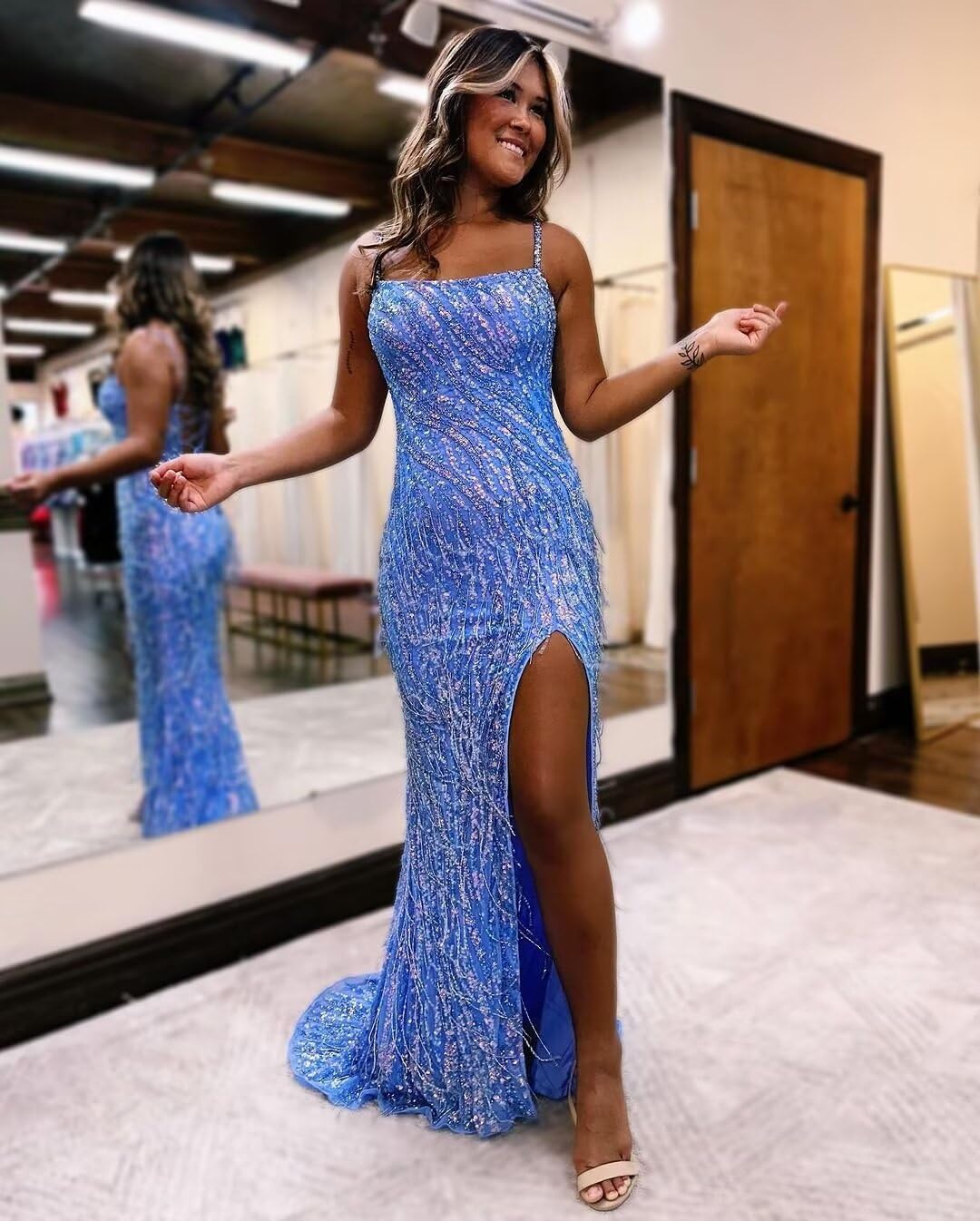 The high slit has a smooth edge, ensuring it stays snug on your legs when you walk, complementing the smooth texture of the sequined fabric for a sexy yet sophisticated look.
