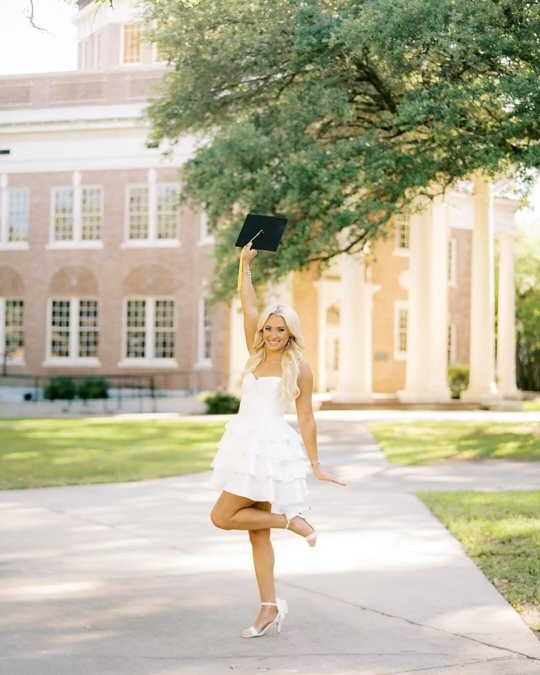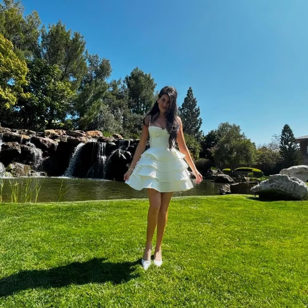 Hairstyle: A low ponytail (to reveal the shoulders and sweetheart neckline, enhancing the elegance); a side-parted French wave (to complement the romantic hem of the cake skirt); a high bun (to add vitality and youthful energy).
