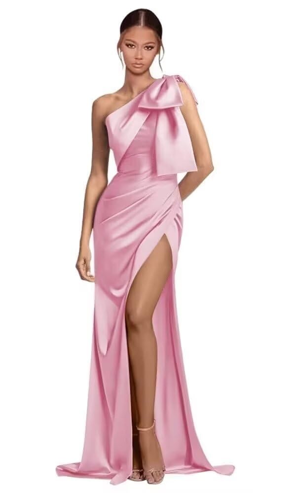 This dress is perfect for formal occasions requiring a striking presence, such as high-end dinners and red carpet events. It can also be worn for important moments of ceremony and romance, such as wedding toasts and anniversary celebrations. Even art exhibition openings and fashion parties, the romantic one-shoulder ruffle, the dramatic high slit, and the luxurious satin finish will make it a focal point, embodying the aesthetic of an elegant and sophisticated dress.