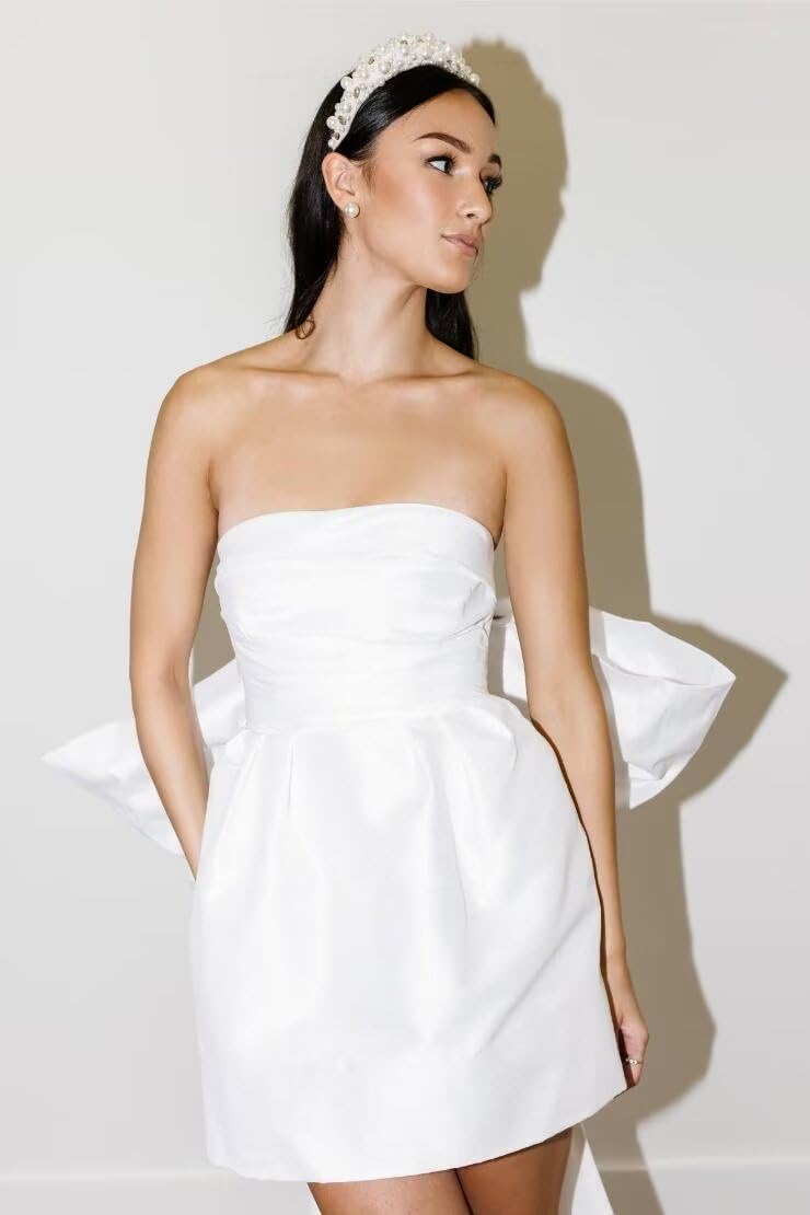 Accessories: Wear simple diamond stud earrings and a thin chain necklace (a subtle touch of sparkle enhances the details without stealing the show). Accessorize with a tonal satin clutch to complement the dress and enhance overall cohesion.